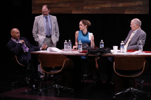 Josh Iacovelli has created a handsome and stylish setting that works for the executive board rooms as well as the other scenes which take place at meetings in restaurants and in a park. The well-tailored costumes by Dustin Cross define each of the legal and corporate characters in their own personal manner. Joan Racho-Jansen’s lighting is entirely suitable to the several settings.