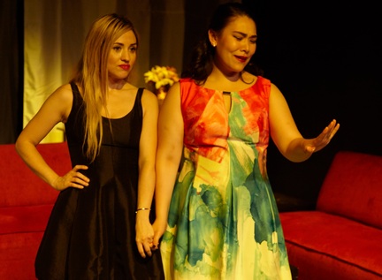 Erika Santosuosso and Kelsey Moore in a scene from “Bachelorette” (Photo credit: Giovanna Grueiro)