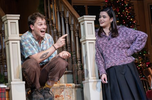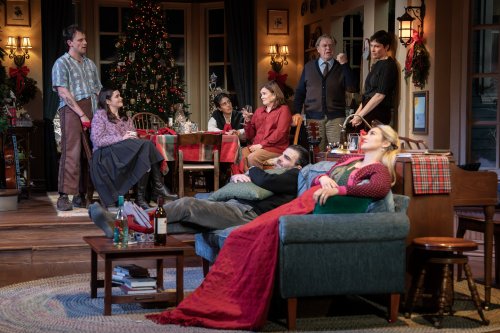 The magnificent design team has created a cozy, homey environment while it continues to snow outside the windows through most of the play. John Lee Beatty’s attractive first floor of the country farm house is festively decorated for Christmas as well as the annual family Christmas party with its inviting fireplace, comfortable chairs and many wreaths and colored lights in blues, reds and greens. Sophia Choi’s costumes define the characters as soon as we see them. The lighting by Heather Gilbert is both subtle and warm. Jacinth Greywoode’s musical supervision and Gigi Buffington’s vocal coaching has paid off with the wonderful singing and musicianship of the entire cast. Liz Printz has given each of the women a different look with her hair and makeup design.