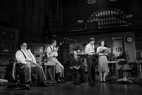 If only film star George Clooney and his co-script writer Grant Heslov had hired an actual playwright to adapt their acclaimed screenplay for the 2005 film Good Night, and Good Luck. for the Broadway stage. What worked in close-up in the film does not have the same effect on the huge stage of the Winter Garden Theatre. And while David Strathairn as Edward R Murrow in the film, the role now played by Clooney on Broadway, also seemed wooden and unemotional, every flicker of emotion on his face was telegraphed through the extreme close-ups of every frame. With its cast of 22 on a huge CBS studio set, most of the characters are undefined or unidentified. At times it is difficult to know who is talking or where their voices are coming from on the multileveled setting.