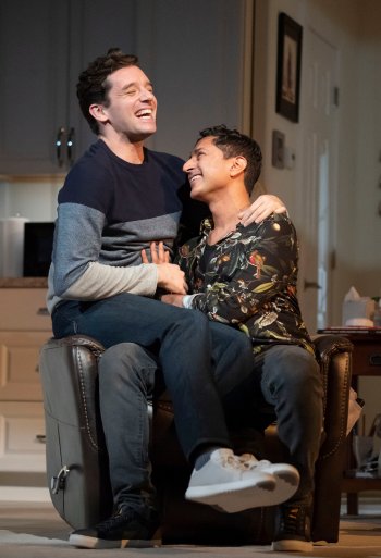 Michael Urie and Maulik Pancholy in a scene from Bess Wohl’s “Grand Horizons” at The Helen Hayes Theater (Photo credit: Joan Marcus)