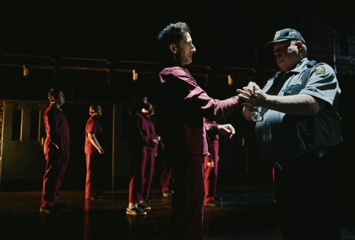 Holding visual surprises in the style of an Advent calendar, scenic designer Arnulfo Maldonado’s towering block of prison cells has a few sliding flourishes to break the dismal monotony. Besides dramatically expansive lighting and sound efforts from Heather Gilbert and Lee Kinney, respectively, that fleeting variety is also supplied through some other set legerdemain, including the sudden appearance of Jacki’s home, a cozy space where she distractedly watches sitcoms about casual friendships and accepts collect calls from the penitentiary. It might not be a lot of character development, but it’s better than what is afforded the rest of the sizable cast, which is largely tasked with embodying multiple roles as guards, prisoners, cops, criminal-court drones, or additional miscreants. While Thompson’s Jacki helps Brody’s Nick fight for his freedom, the other actors whiplash between bringing Nick’s tumultuous past and dispiriting present to narratively thin life.