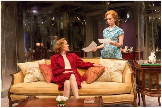 While the men in the play get the short end of the stick, their roles are also somewhat underwritten. We don’t learn as much as we might about them as it is all seen from the women’s point of view. As Paul Espenshade, Cliff Bemis is appropriately bland and genial as the cheating husband believing that he has effectively covered up his long-running affair. Sean Patrick Hopkins is extremely sympathetic in his one scene as Vernon, Penny’s much neglected husband, though he does not seem very dynamic man married to this progressive woman. The play takes place in Vicki R. Davis’ well-appointed and mirrored sitting room which seems to be a metaphor for the play. It is filled with prop designer Joshua Yocom’s appropriate detritus of 28 years of marriage. The room is bathed in a soft light by designer Christian DeAngelis. Sound designer Jane Shaw has included period songs before each act that ironically comment on the action. All of Varga’s costumes are redolent of the 1940’s but also attractive in themselves.
