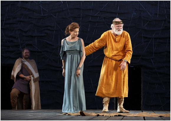 The Public Theater’s King Lear, the second Shakespeare in the Park offering of the summer of 2014, was eagerly awaited for four reasons. In the title role, it marks John Lithgow’s return to the park for the first time since 1975, as well as Annette Bening’s return to the New York stage after a 26 year hiatus making films. It is also the first Delacorte Theater King Lear since 1973. And finally director Daniel Sullivan has done wonders with such recent Shakespeare in the Park revivals as The Comedy of Errors, All’s Well That Ends Well, The Merchant of Venice and Twelfth Night. While the production is unfussy, coherent and lucid, it is also colorless, unimaginative and bland, a real surprise from such talent. Part of the problem is that most of the well-known featured actors have their own styles and seem not to be in the same production.