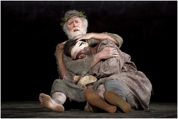 Lithgow seems an unusual choice for Lear both considering how little Shakespeare he has performed in his distinguished career and how completely he is associated with contemporary roles. To his credit, he has undeniable stage presence and establishes Lear’s arrogance and sense of entitlement from his very first appearance. He has also created an arc that takes him from overweening pride into his decline into madness and humility. Unfortunately, Lithgow never achieves tragic grandeur: much of the time his Lear seems to be comically observing the changing world around him without showing how much he has lost, other than his retinue and followers. He is not a bad Lear – he just hasn’t scaled the heights.