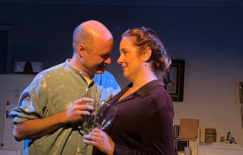 Andrea Bell Wolff as Gladys and Spencer Neumann as Elliot Abrams in a scene from Gary Morgenstein’s “A Tomato Can’t Grow in the Bronx” at the Chain Theatre (Photo credit: Mateo Del Campo)