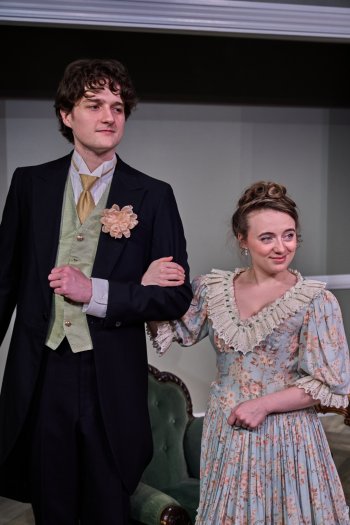 Jed Peterson and Madelyn Monaghan in a scene from The Storm Theatre’s production of Oscar Wilde’s “An Ideal Husband” at Jeffrey and Paula Gural Theater at A.R.T./New York Theatres (Photo credit: Michael Abrams)