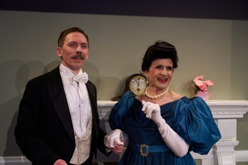 Chase Bishop and Connie Castanzo in a scene from The Storm Theatre’s production of Oscar Wilde’s “An Ideal Husband” at Jeffrey and Paula Gural Theater at A.R.T./New York Theatres (Photo credit: Michael Abrams)