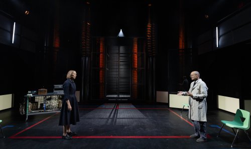 As a playwright Tim Blake Nelson has always been interested in moral and ethical problems in such play as The Grey Zone, Eye of God and Socrates. His latest play And Then We Were No More now at La MaMa E.T.C. is also about such knotty questions but this one is set in the near future. A dystopian drama, And Then We Were No More investigates a justice system no longer interested in mercy but in an algorithm which makes all decisions. Mark Wing-Davey’s production featuring acclaimed actress Elizabeth Marvel is glacially cool in the manner of sci-fi movies that have something serious on their mind. The play has some resonance for the times we are living through now.
