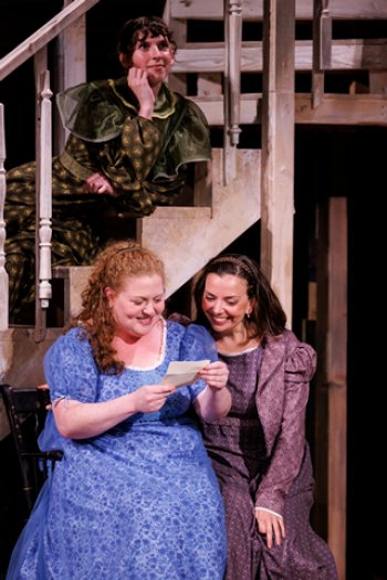 Masha Breeze, Elyse Steingold and Violeta Picayo in a scene from the Bedlam production of Emily Breeze’s “Are the Bennet Girls Ok?” at the West End Theatre (Photo credit: Ari Espay)