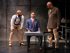 Comprised solely of stackable chairs and tables, the set design by Chika Shimizu is streamlined, effective, and urban-looking; they appear to be made of steel pipes suggesting skyscrapers and are easily configured within seconds by the actors, then accented by well-chosen props by Addison Heeren. Everett Clark’s costumes perfectly convey the characters’ backgrounds and socioeconomic statuses without drawing unnecessary focus.