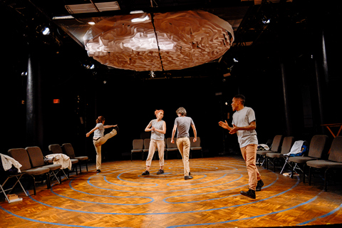 Annie Hartkemeyer, Tara Amber, Colin DePaula and Kahiem Rivera in a scene from Tara Amber, Chuk Obasi, and Nalini Sharma’s “Being Chaka” at New Ohio Theatre (Photo credit: Kevin Condon)