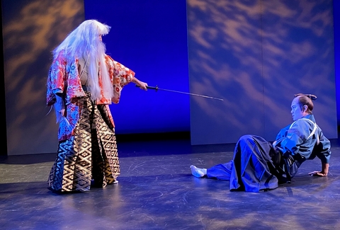 Jun Suenga and Koji Ono in a scene from Amaterasu Za’s production of “Chushingura – 47 Ronin” at A.R.T./New York Mezzanine Theater (Photo credit: Melinda Hall)