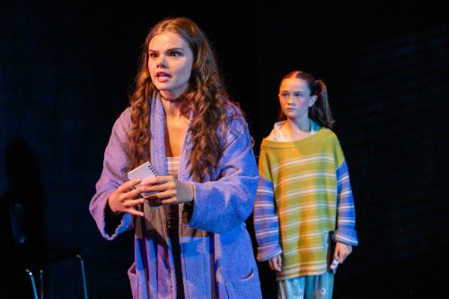 Katherine Reis and Blaire DiMisa in a scene from Gail Kriegel’s “Cracked Open” at Theatre Row (Photo credit: Russ Rowland)