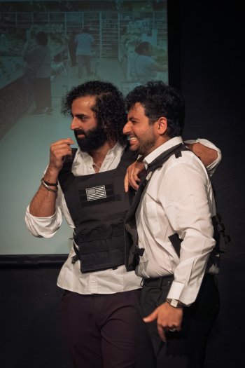 Another sketch, featuring Shivam Seth and Himanshu Gautam as overzealous ICE agents, veers from bureaucratic menace into gleeful absurdity. This culminates in their “victims” segueing into an impromptu dance break set choreographed by Juhi Madan to the irrepressible strains of “Desi Girl,” before swerving, with intentional bathos, into the two men attempting some frosty nostalgia with Vanilla Ice’s “Ice Ice Baby.” Magic Mike 4, 5 and 6 have nothing to worry about here. Yet another sketch finds a recently deceased 29-year-old trying to negotiate with the monitors of the “velvet ropes” outside Heaven, despite the fact her most recent Halloween she went as a Slutty Angel. Company members Bande-Ali, Sattar, Shah, Seth, Gautam, Meghan Mehta, Baani Kaur, Sophia Dhanani and Shawki Izzat, as well as co-producer Shreya Thakur, constantly rise to the occasion.