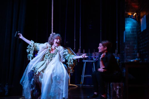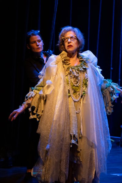 Kelly Kinsella and Jackie Hoffman in a scene from E. Dale Smith’s “Fruma-Sarah (Waiting in the Wings)” at Nancy Manocherian’s the cell theatre (Photo credit: Hunter Canning)