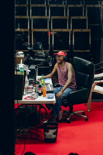 Eric Ngangare in a scene from Milo Rau’s “Hate Radio” at St. Ann’s Warehouse (Photo credit: Amir Hamja)