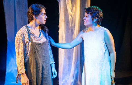 Brooke Elizabeth and Natalie Malia Figuracion in a scene from Suzanne Willett’s “Hucka” at The Players Theatre (Photo credit: Bjorn Bolinder)