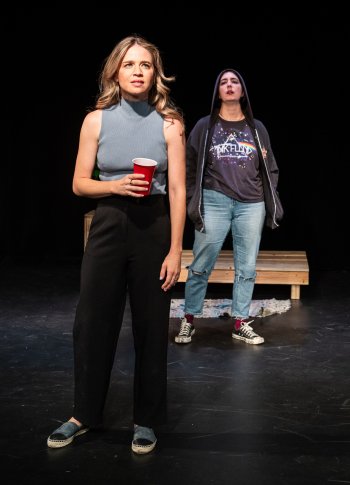 Aimée Fortier as Annette and Rachel Griesinger Elaina in a scene from Kara Ayn Napolitano’s “In Search of Elaina” at The Steve & Marie Sgouros Theatre at The Players Theatre (Photo credit: Al Foote III)