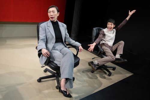 The set by Jean Kim is a simple group of rolling office chairs arranged along a fabric-covered wall. They suggest a business office and are choreographed in a way that becomes an extension of the characters’ emotional state, at once, fast and energetic, and later, leisurely and relaxed, and at other moments dark, lonely, withdrawn, with a feeling of defeat. The lighting design by Oona Curley adds solid support for the characters’ actions both with and without their chairs. Alice Tavener’s costume design not only captures the feeling of a business office but also expresses the individuality of each character. Ben Vigus completes this production ensemble with his use of sound in support of the action, except for the one sound used to indicate a change of time.
