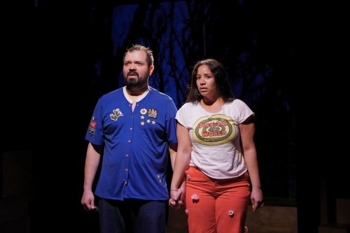 Francisco Arcila as Hamlet and Nefesh Cordero Pino as Ophelia in a scene from Manuel Ortiz’s “Manifest Destiny” at Teatro LATEA at The Clemente Soto Vélez Cultural Center (Photo credit: Viktorija Mickute)