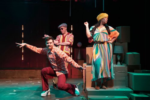 Jesse B. Koehler as Gonzalo, John Evans Reese as Rafael and Nefesh Cordero Pino as Marina Callejas in a scene from Manuel Ortiz’s “Manifest Destiny” at Teatro LATEA at The Clemente Soto Vélez Cultural Center (Photo credit: Viktorija Mickute)