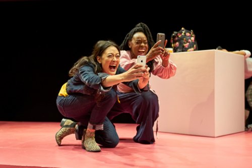 Satomi Blair and Maechi Aharanwa in a scene from Anna Moench’s “Mothers” at the Duke on 42nd Street (Photo credit: Daniel J. Vasquez)