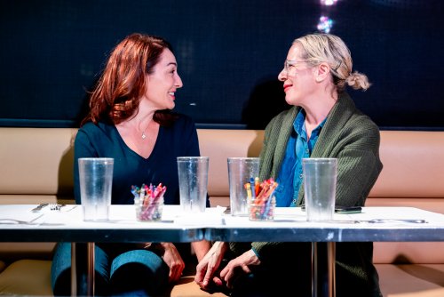 There are moments when the production, having established its firm footing in the recognizable textures of realism — the clatter of dishes, the practiced smiles, the brittle cadences of polite conversation — suddenly tilts, almost imperceptibly, into another realm entirely. Designer Attilio Rigotti’s subtlest modulation of light and the faint, uncanny glow of a soup bowl transfigures into something near-mystical, and the diner becomes a threshold: a passageway into the characters’ interior landscapes, those trembling, unspoken places where trauma and denial quietly roost. At first, these departures can feel jarring — a breach in the play’s naturalistic spell, as though we’ve stepped momentarily off the map. Yet, as the evening unfolds, one comes to understand their purpose: these spectral interludes do not abandon the world of the play so much as deepen it, peeling back the veneer to reveal the raw, psychic undercurrent thrumming beneath. What once felt disorienting soon emerges as essential, expanding our understanding of these women beyond dialogue and gesture, allowing their buried griefs to shimmer briefly into view.