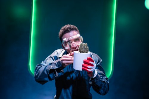 Tay Bass in a scene from Johnny G. Lloyd’s “Or, An Astronaut Play” at The Tank (Photo credit: Skye Morse-Hodgson)