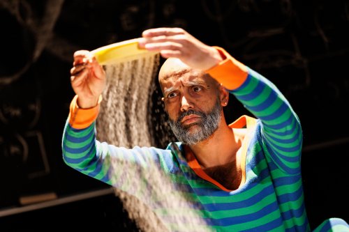 Rheology begins as a science experiment, moves on to a demonstration of stage directing and acting, and ends up as a colloquy on life and death. Watching as the physical experiment segues into metaphysics is quite remarkable, teaching us several lessons along the way. Throughout the evening, musician George Crotty plays the cello with melancholy but beautiful live music from the back of the theater. While neither Chakraborty nor Chowdhury are professional actors, they are charming company as they portray their own (albeit) scripted lives for us. As one part of the play transforms into another, we are almost seeing the metaphorical sand change its shape which is where the play begins. The play itself is an example of its title, one thing morphing into another. Rheology is a unique theatrical experience which only these performers could have created and enacted.