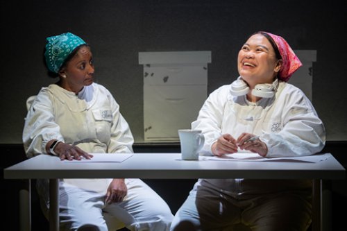The story (what there is of it) begins when Zora, a Ph.D. from the prestigious and well-funded Townsend Labs transfers to the Synthetic Apiary, a less important lab that is working only on bees. She is assigned to a unit with Pilar, a dedicated but not as well educated technician who grew up around hives and bees. Both of them come up with several possible solutions but Gwen, their supervisor, is usually worried about the cost which Zora is willing to cover herself. Nimene Wureh plays a series of young women interviewed for various experiments at the lab. In a poetic effect, Stephanie Crousillat dances to choreography by Warren Adams periodically as a symbolic depiction of the bees in moments that are not very well connected to the rest of the play and seem both intrusive and extraneous.