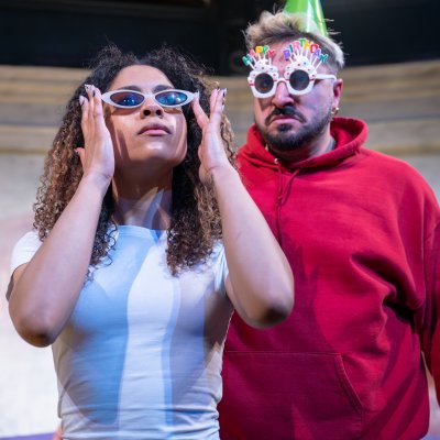 The play is treated like a rehearsal (a conceit also used by Bedlam in their incomprehensible and lame Henry IV workshop in Brooklyn in 2023) with the character of the director (Andrew Rothenberg who also plays Shaw’s Caesar) stopping the action periodically and breaking the mood. The costumes (production designed by director/adapter Eric Tucker, wardrobe supervisor Damarius Kennedy) are contemporary; whether this is supposed to be rehearsal clothes or a modern dress version is never made clear. (It is obviously cheaper than having to create period correct Egyptian and Roman costumes.) In terms of continuity, there are two Caesars: Rajesh Bose as Shakespeare’s Caesar and Rothenberg as Shaw’s which destroys any transition from one play to another. In fact, the segues from one text to the other are non-existent with one scene following another from the other play without any transition.