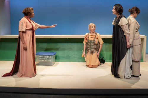 So back to the actors: Lizzie Fox, Halima Henderson, Layla Khoshnoudi, and Emma Ramos. To try and inventory each of these performers’ talents and how they shine in the multiple parts they play would result in a lengthy dissertation. Suffice to say that each gives nuanced, expressive, and deftly funny portrayals of a myriad of roles.