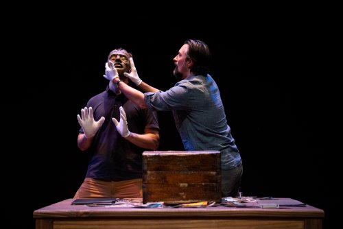 Carson Alexander and Jeffrey C. Wolf in a scene from Open Circle Play Factory’s revival of Lanford Wilson’s “The Mound Builders” at Theatre Row (Photo credit: Maria Baranova)