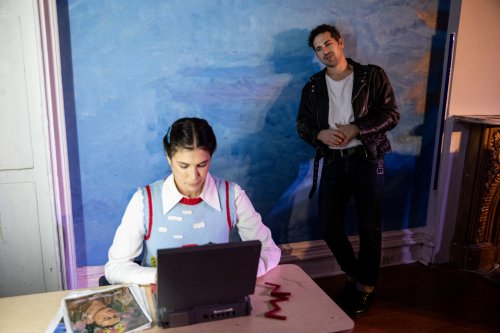 The ambiguous production design includes Frieda Kahlo paintings in Torn’s video and two different blue murals by Donald Gallagher on either side of the fireplace. The uncredited set includes a desk and a laptop, a make-up table, a clothes closet and an armchair suggesting that the intimate playing space is meant as a bedroom. The lighting by Jay Ryan is suitable without adding anything to the play. The sound design also by Torn includes the periodic music played on and off through the evening including Mexican singer-songwriter Marco Antonio Solis’ “Sí no te hubieros ido” which holds an important meaning in the text.