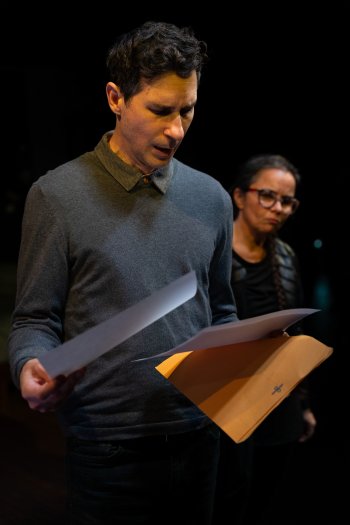 Jane Ives as Gina Stone and Yuval Boim as Martin Abel in a scene from Terry Curtis Fox’s “Transgression” at Here Arts Center (Photo credit: Max Liebergall)