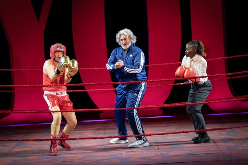 The starry cast which includes stage, screen and television stars such as Academy Award-winner Lupita Nyong’o, Primetime Emmy and Golden Globe-winner Sandra Oh, four- time Primetime Emmy Award winner Peter Dinklage, Tony Award-winner Jesse Tyler Ferguson, Tony Award nominee Daphne Rubin-Vega, Tony Award-nominee John Ellison Conlee and Theatre World Award winner Khris Davis seems to be enjoying themselves enormously inviting us to join in the fun. However, as Ali has allowed them to behave as though they are all in different plays, the entire evening does not hang together. However, one casting decision works beautifully: the two twins are played by siblings Lupita Nyong’o and her brother Junior Nyong’o making his New York debut. They look enough alike to make the mistaken identity plot make sense for a change.