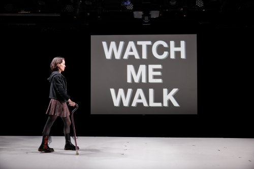 Anne Gridley begins Watch Me Walk by taking its title at punishingly literal face value. She introduces herself, grips her walking stick—never a cane, a semantic correction that quickly reveals its philosophical weight—and proceeds to walk the length of the stage again and again, in near silence, for so long that the initial charge of provocation slowly discharges. What remains is not suspense but facticity. In another theatrical ecosystem, this might register as endurance art or a sly conceptual prank; here, in a Soho Rep production presented in association with the recently concluded 2026 Under the Radar Festival, it operates as a recalibration of spectatorship itself. We arrive alert, waiting for the performance to “start,” only to discover that it already has—and that the only thing lagging behind is our attention.