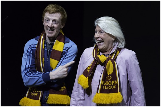 Please allow me to give you the full title of the first of the two plays of the evening: A Respectable Widow Takes to Vulgarity. That is a better preparation somewhat for the loopy language attitude which causes Brits and Scots – and all the other semi-indigenous inhabitants of the British Isles – to grow giddy with laughter at the drop of a dirty word. The basic situation of the play? A high-toned lady discovers the joys of talking dirty, a delight she had assumed was the exclusive privilege of the lower classes as compensation for their benighted estate. Playwright Douglas Maxwell, bless his heart, wrangles this basically one-joke plot into realms of human behavior that takes us beyond the joke into touching moments of genuine communication and warmth which is, after all, what the fuck we’re tackling, right?