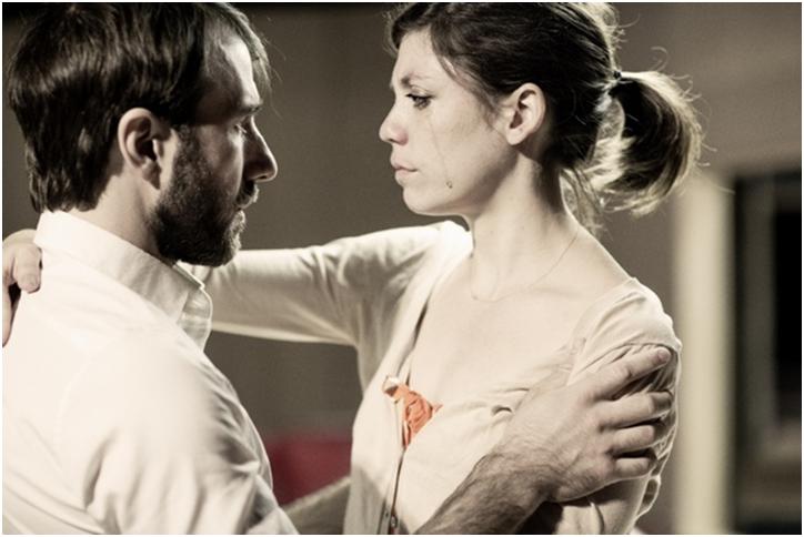 Alex Hurt and Susannah Flood as Johan 1 and Marianne 1 in a dramatic moment from Scenes from a Marriage(Photo credit: Jan Versweyveld)