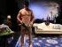 Wearing a white shirt, patterned tie, black pinstripe suit pants, red suspenders and with his hair slicked down and styled, Mr. Menino visually bears a strong resemblance to the famed broadcaster. Vocally, Menino gives a commanding approximation of Murrow’s distinctive emphatically clipped delivery. Most crucial to his intense characterization is his animated presence that conveys the emotional highs and lows of the revered American cultural figure.