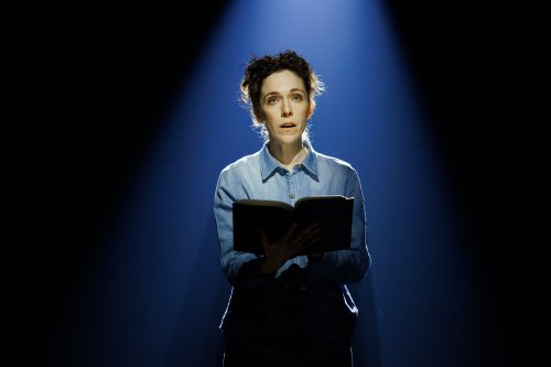 Jen Tullock in the one-woman play “Nothing Can Take You from the Hand of God” at Playwrights Horizons (Photo credit: Maria Baranova)