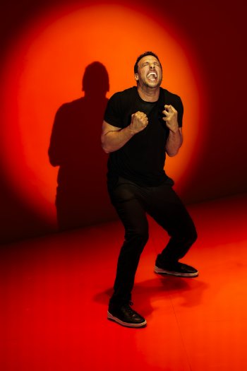 But as Stachel shows us here, that glamorous moment of triumph quickly devolved into a private storm of panic: overwhelmed by congratulations, he fled repeatedly to the bathroom, desperately mopping sweat from his brow with paper towels. This moment—both comic and tragic—is the dramatic overture to Other, and it sets the tone for what follows: a raw, intricately choreographed confession delivered by a performer in perpetual motion, not only physically, but emotionally, culturally, and spiritually.