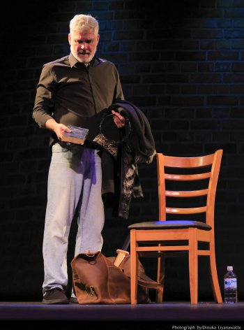 Paul Shearman in a scene from his “The Last Audition” at the Chain Theatre (Photo credit: Dimuka Liyanawatte)