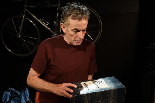 Spencer Aste in a scene from his one-man show “Wake Up” at the Axis Theatre (Photo credit: Regina Betancourt)
