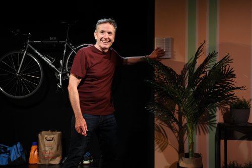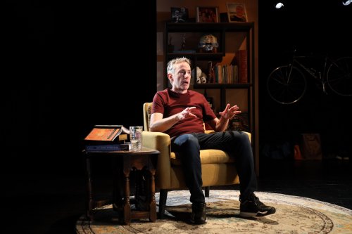 Wake Up unfolds on Jon McCormick’s comfortable apartment set representing Aste’s New York City home. Aste begins, perhaps too enthusiastically, wondering why he’s doing a show about himself and not acting a character in a play, his usual métier. He hints at things to come.
