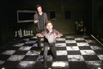 Thematically central to the plot is set designer Ann Beyersdorfer’s likewise confusing human-sized chess set. Scattered across the multi-leveled stage, the pieces seem to signify the paradoxical multitude and lack of agency we possess in our own lives. They suggest that our circumstances simultaneously present us a nearly infinite combination of options and an equally large number of unforeseeable obstacles. However, this assertion is only vaguely alluded to in the dialogue and instead specifically explicated in the program notes. To the theatergoer less interested in supplemental reading, the image onstage is a confounding one; characters carry massive pawns across the checkered stage floor for seemingly no reason.