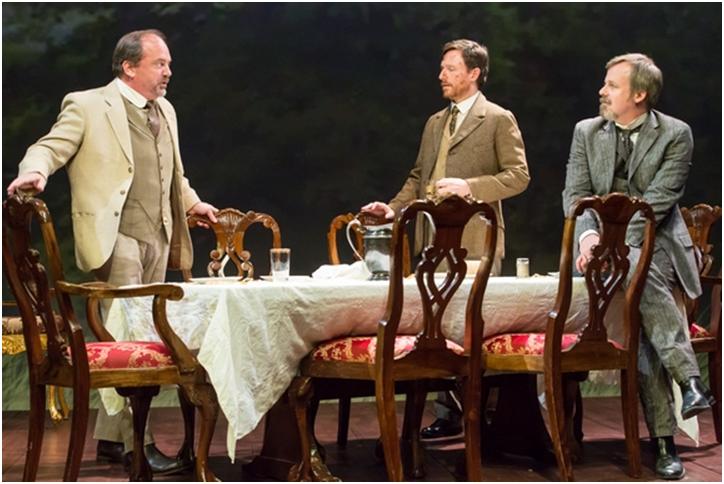 Chris Mixon, Brad Heberlee and Bradford Cover in a scene from the Pearl Theatre Company’s Uncle Vanya (Photo credit: Al Foote III)