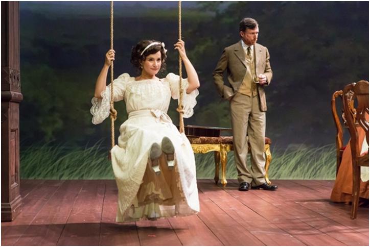 Aside from his light touch which keeps the play from seeming gloomy, Brooks has an uneasy hold on the play’s rhythms which seem erratic – we are never sure what kind of play we are watching. Schmidt’s translation goes a long way to blowing off the cobwebs on Chekhov’s 19th century Tsarist Russia but his occasional use of a contemporary word like “freak” draws attention to itself. While Simms’ unit set suggests a summer retreat with its green walls covered with vegetation, he makes little distinction between indoors and outdoors and the claustrophobia which the characters are feeling is never real to the audience. So too the continual rain in Act Two which is driving all of the characters mad is not much in evidence in M. Florian Staab’s sound design. Barbara A. Bell’s costumes are attractive but she seems to forget that the elusive, vain and desirable Yelena would most likely be dressed in the height of fashion, making her irresistible to the men around her.