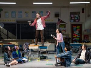 While Belflower’s play is clever and insightful, it is also contrived and manipulative attempting to shoehorn almost every feminist hot button topic into one story overlaying "The Crucible": date rape, sexual abuse, sexual harassment on the job, toxic masculinity, patriarch dominance. It makes all of the male characters look like idiots and all of the women victims which is not exactly a reflection of real life. It also overloads the deck while at the same time copping out in the end. While New York teens are probably much more liberated than those in rural Georgia, the language of the play is incredibly devoid of swear or curse words which usually pepper the speech of adolescents. Finally, it borrows from Ivo van Hove’s 2016 staging of "The Crucible" in which a modern classroom also turns into a telling of Miller’s play. [more] -